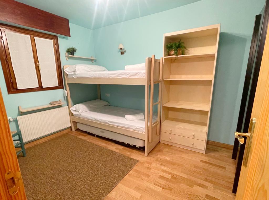 El otro dispone de 3 camas individuales de 90 cm. Dos de ellas en litera.