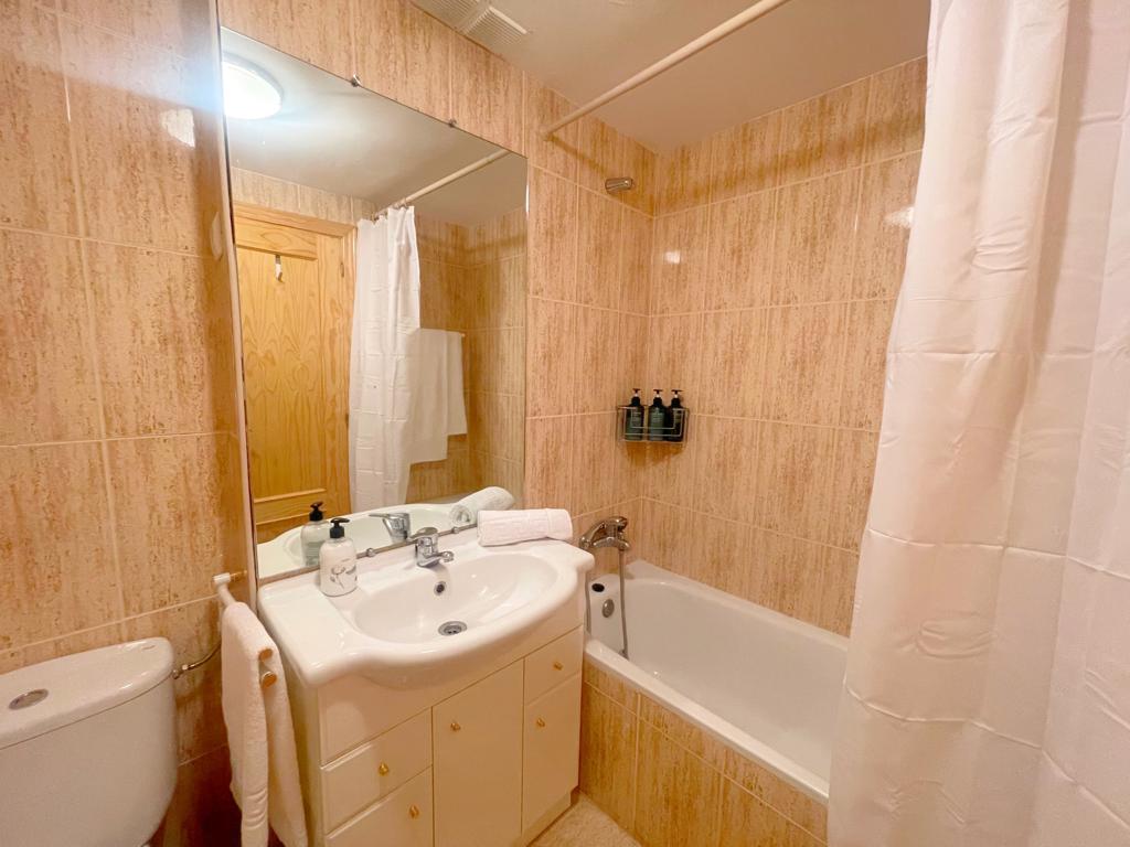 El cuarto de baño dispone de una amplia bañera. También ofrece secador y gel de ducha.